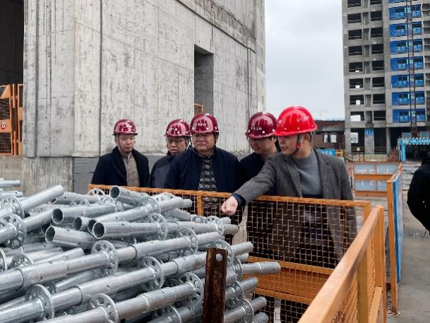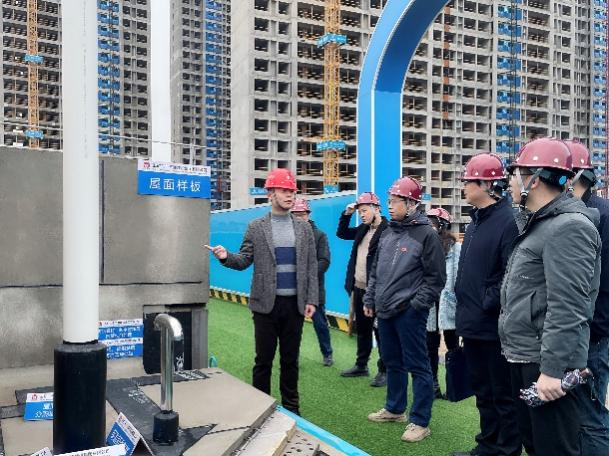 活动第一阶段,教工二支部参与成员在芙蓉春晓项目部安全总监丁杰的陪同下,先参观了该项目部标准化建设工地,丁杰介绍了标准化项目部的概况、标准化项目管理、施工做法等。