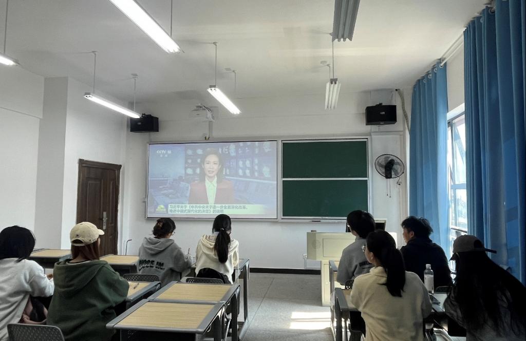 活动初始,由支部书记朱笑雨带领学生党员观看有关《中共中央关于进一步全面深化改革推进中国式现代化的决定》的视频;同时结合自身经历与本职工作对阐述党的百年历史、传播党的创新理论及新中国成立75周年以来的辉煌成就讲了一堂“微党课”。