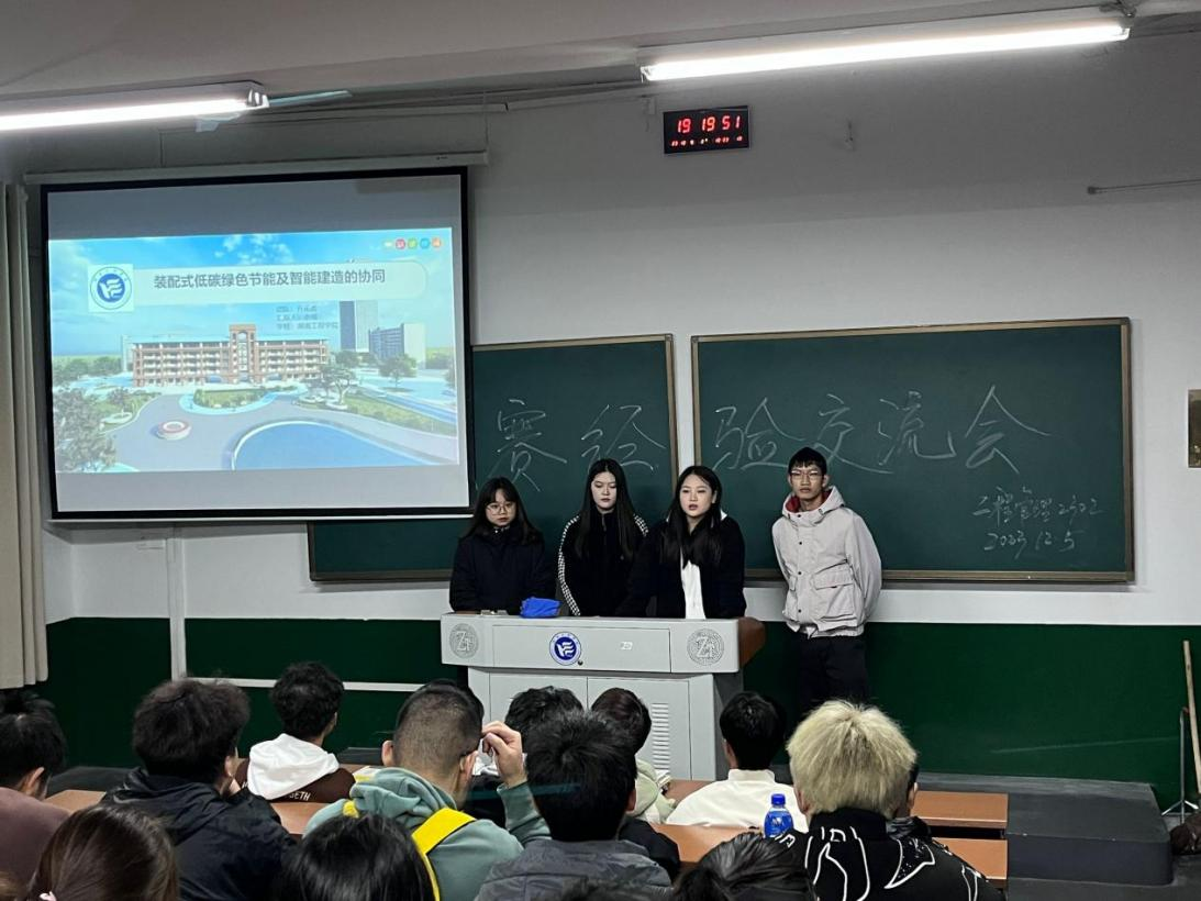 “第四届全国智慧城市与智能建造大学生创新创业竞赛”获奖队伍----“开拓者”队的学长学姐们,交流了队伍团结、练习、创新,在企业专题赛道中建立起用于测量碳排放量的网络基站的艰辛探索经历。网站建立者、计算机专业学长唐薪分享了“训学训相长,敢于实践,造就成功”、“团结协作,相互纠偏,走出困境”的宝贵经验。