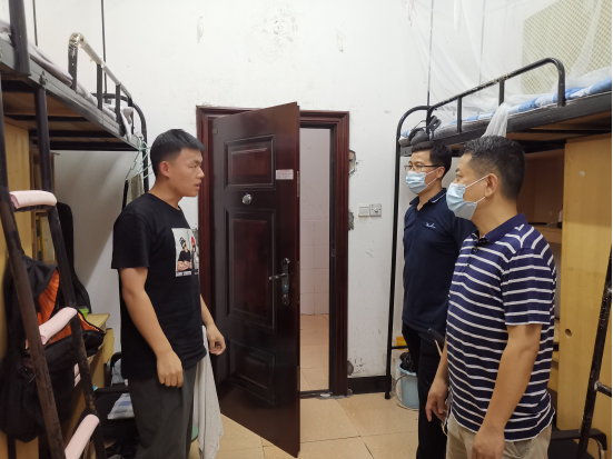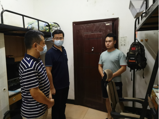 2021年8月4日晚,为了解暑期留校学生防疫、住宿情况,关心学生健康与安全,开云网页版页面党委书记张宏、副书记梁桥带领辅导员一起深入学生宿舍看望留校学生。