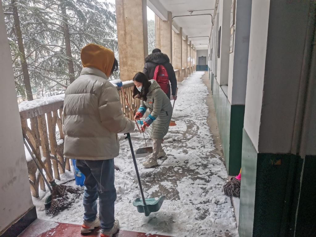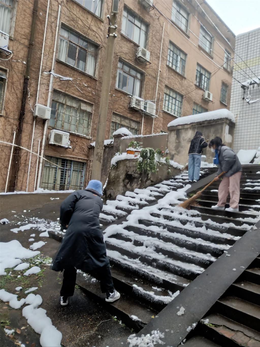 学生党员充分发挥党组织战斗堡垒作用和广大党员先锋模范作用,积极党员干部开展扫雪除冰行动,用实际行动践行“我为群众办实事”,天气虽冷,却丝毫没有影响大家的干劲,很快就将积雪清理的干干净净。