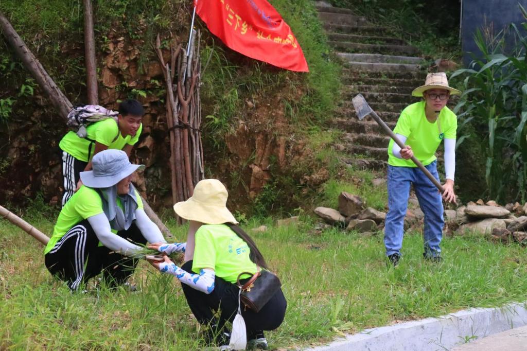 投身整洁行动,尽显青春担当。道路除草行动是实践团助力改善埔坪村人居环境、实施乡村振兴战略的重点实践活动之一,成员在铺坪村驻村干部的指引下,顶着烈日、携着工具,沿着村内主干道两旁进行杂草清理。