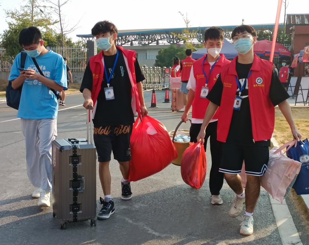 迎新工作将持续两天,这些迎新志愿者们是由开云网页版页面教职工、学生联合会的学生干部干事以及学生党员、团员们组成。大家以优质的服务去迎接新生,耐心沟通,领着2022级新生穿梭于报到登记点、生活用品领取处、宿舍楼栋等新生办理入学手续必经的各个地点。在整个迎新工作中,努力做到了热情、细致、周到、规范、有序,获得了新生及家长的一直好评,充分展现了展开云网页版页面师生积极热情的精神面貌。“看见这么多穿红马甲的志愿者们帮忙搬送行李,我就放心了”,建筑学专业新生家长在校门口挥手送别。