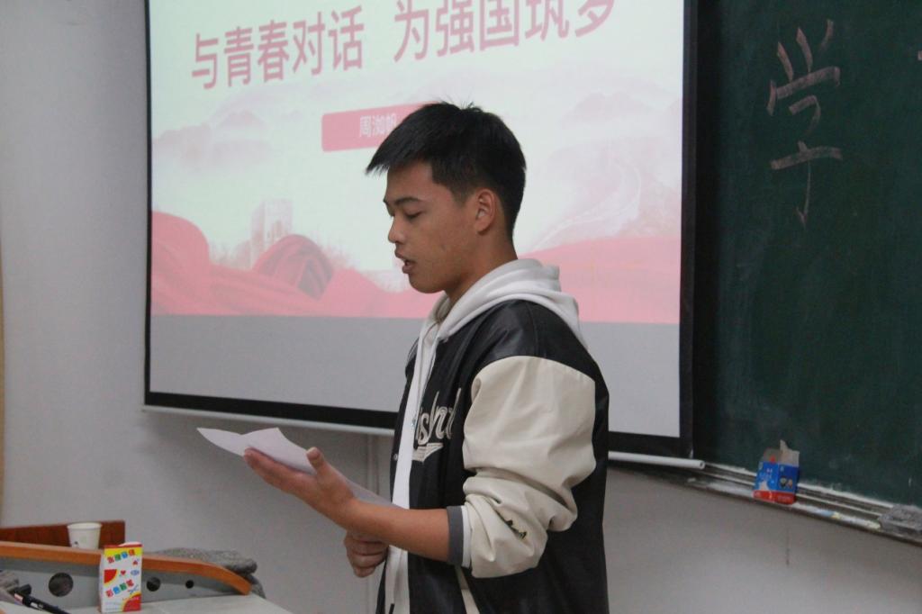 党的第二十次全国代表大会是一次高举旗帜、凝聚力量、团结奋进的大会,在党和国家发展进程中具有极其重大的历史意义。为深入学习贯彻党的二十大精神,在院党委的领导下学生联合组织于10月27日晚在红楼305开展了以“踔厉奋发迈向新征程”为主题的团课。此次团课由院团总支书记周洳帆主讲,学生联合组织全体干部参加。