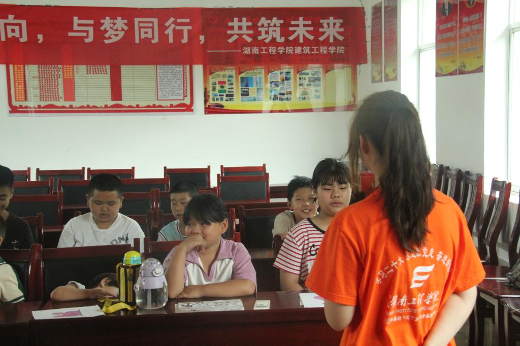 在音乐教学中,实践团成员教小朋友们唱歌曲《左手右手》与《我还有点小糊涂》,“当你的手拉着我的手,团结的力量彼此感受”,实践团成员耐心地教导每一句歌词、每一段韵律,以多彩有趣的形式寓学于乐,让孩子们在轻松欢乐的氛围中学到新内容,通过采用上台表演、集体大合唱等形式让小朋友们展示自我、释放活力,在教学过程中教室里不断地回响着欢声笑语与齐声高歌的阵阵童声。