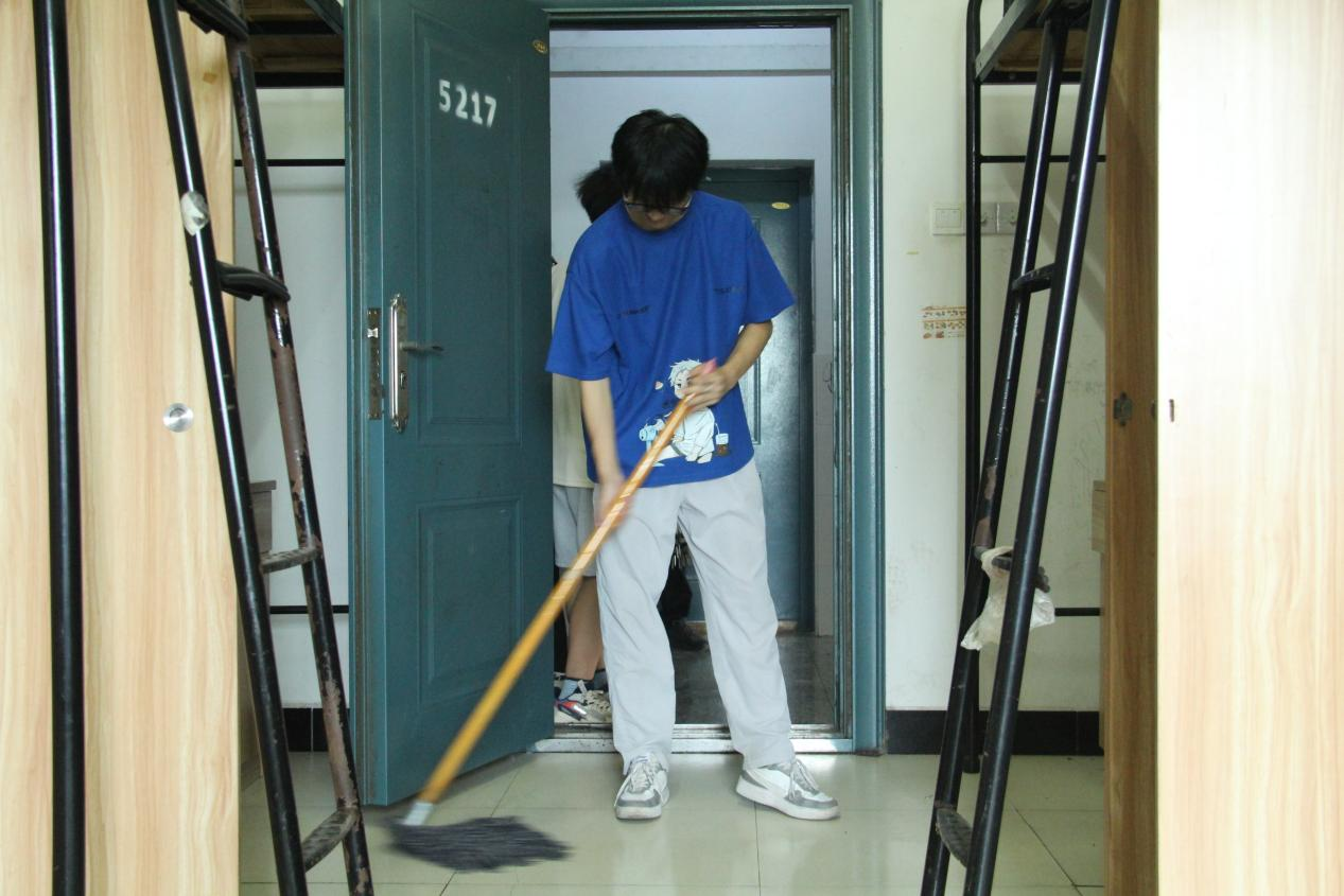志愿者们拿着清扫工具来到了滨江3、5、7栋宿舍楼。为保证清扫工作高效有序开展,每个宿舍由两位成员打扫,每两个宿舍设置一个组长,负责组员分工以及工作验收。到达指定宿舍后,所有成员分工明确、配合默契,将宿舍的地面、桌面进行清洁。同时,志愿者们还对新生宿舍设施情况进行了登记。在所有志愿者的共同努力下,全体新生宿舍面貌焕然一新。