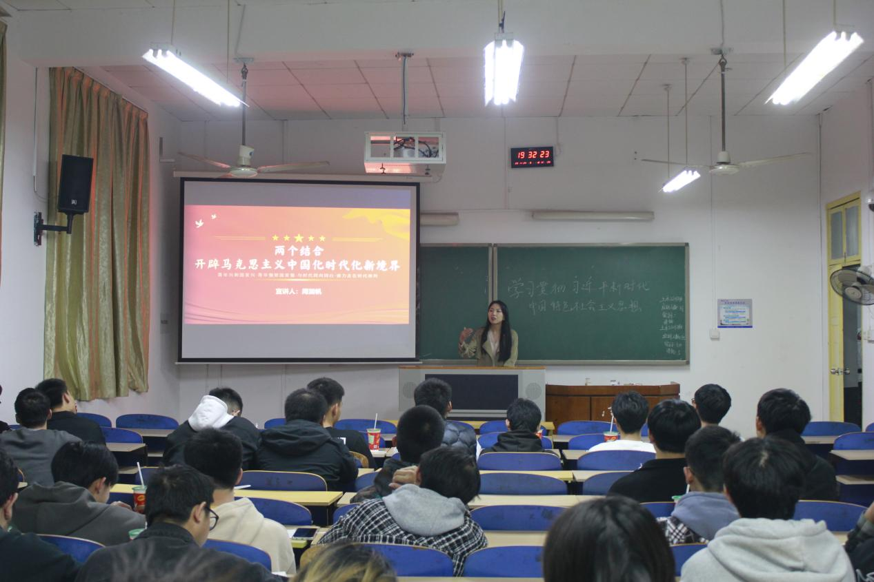 为引领广大团员青年在强国建设、民族复兴伟业中挺膺担当,积极把远大理想和民族情怀相结合,为奋进新征程凝心聚力,踔厉奋发、勇毅前行,为全面建设社会主义现代化国家、全面推进中华民族伟大复兴而团结奋斗,11月24日晚七点,开云网页版页面各团支部于红楼开展以“学习贯彻习近平新时代中国特色社会主义思想”为主题的十一月团日活动,本次团日活动由院团总支书记周洳帆主讲团课,全体团员青年参与。