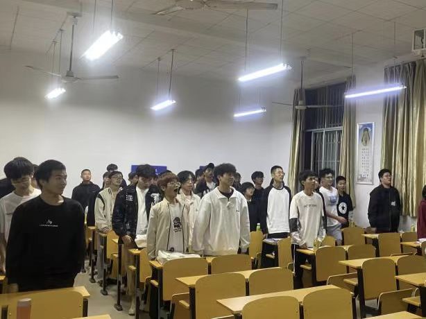 在齐唱《光荣啊,中国共青团》后,团日活动正式开始。本次团日活动有三个阶段,第一阶段团支书领学了关于习近平总书记五四青年节对全国广大青年寄语,深刻感悟讲话精神。第二阶段主持人以主讲ppt看视频形式学习新时代青年在各行各业奋斗中展现青春作为、贡献青春智慧的故事。最后阶段组织大家共同观看了关于生命安全的相关视频。