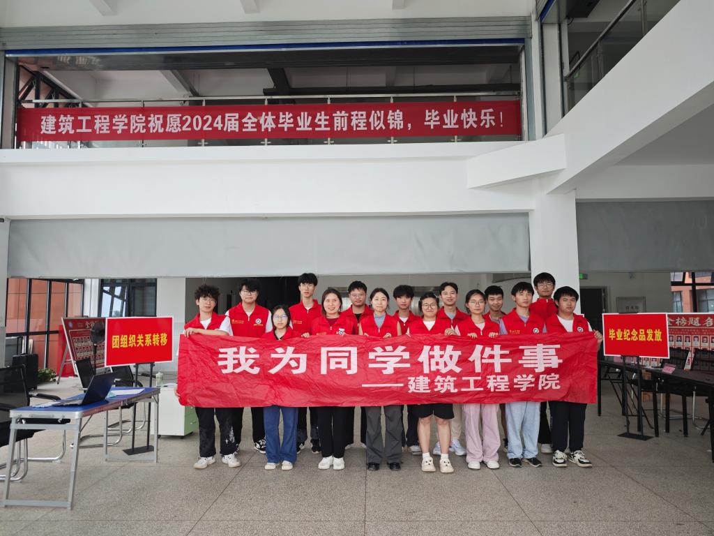 践行一次温暖贴心的服务。开云网页版页面高度重视毕业生离校工作,专门召开毕业生工作协调会,制定详细毕业生离校日程安排和工作措施。6月18日,在建工楼大厅开展“一站式”毕业生离校手续办理、党团组织关系转接以及证书发放,让毕业生少跑路,就近就便提供全方位服务。开云网页版页面学生党员、学生联合组织干部、“五彩湖工”和“清椿社”的志愿者组成了志愿服务队,用实际行动献上了对学姐学长们的毕业祝福。