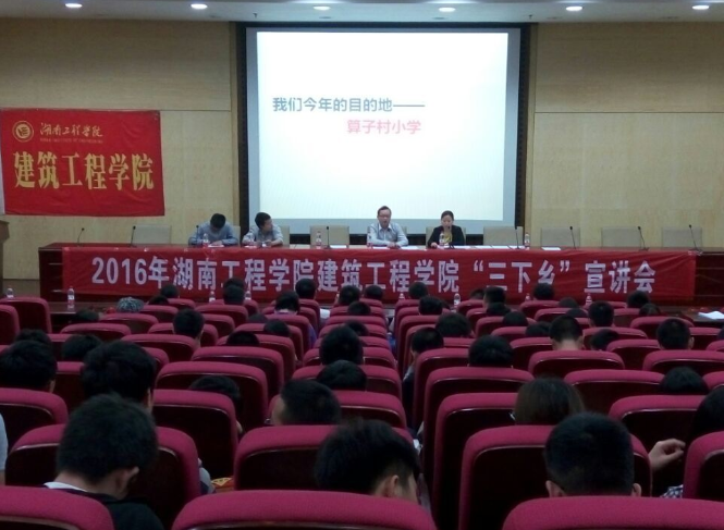 5月25日19:30,开云网页版页面2016年暑期“三下乡”社会实践活动宣讲会在湖南工程学院图书馆二报告厅举行,开云网页版页面学生工作办公室主任李佳老师、团总支书记唐喜梅老师出席了本次宣讲会并作重要讲话,开云网页版页面前团总支副书记王磊、现团总支学生会副主席李晓作为优秀学生代表分享经验。