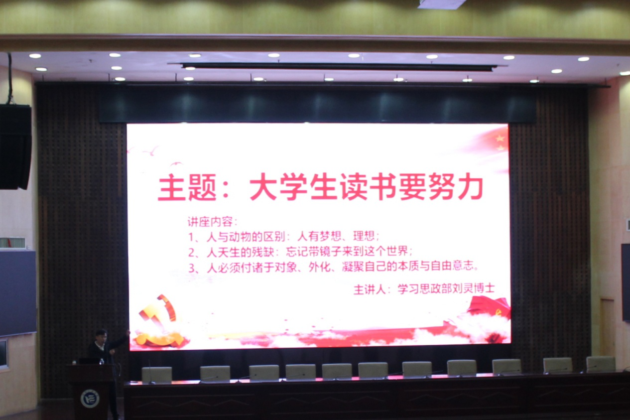 在此次讲座中刘博士以人与动物的区别,人天生的残缺,人必须付诸于对象、外化、凝聚自己的本质与自由意志三点内容来展开讲座,深刻而严谨的论证了当代大学生要努力读书的必要性。我校大学生在此次讲座中收获良多,并且对什么是信仰有了更加深刻的认识,对在大学中为何要努力读书有了更加明确的了解,同时也清晰了自己未来大学生活的奋斗方向。
