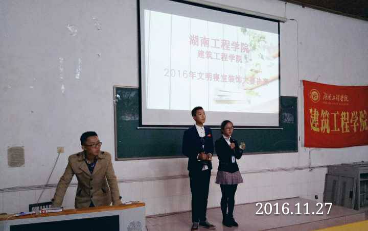 比赛开始前,郭文辉老师就此次文明寝室装饰大赛进行讲话,她首先表扬了此次积极参加装饰大赛的各寝室,并再次向我们强调一个和谐温暖的寝室在我们的大学生活中的重要性。在热烈的掌声中,各寝室展示正式开始,有表演的ppap舞蹈的“男团”寝室,那逗趣的舞姿和滑稽的歌调,令在场的气氛跟着活跃起来,赢得阵阵喝彩声;同时也有温馨的女生四人寝,每个寝室成员都有各自喜爱的装饰分格,有古典风格的,有清新风格的,有淡雅风格的,更有摇滚风格的,不同的风格展示了她们不同的个性,但对寝室的热爱是相同的。所有寝室都展示完毕后,根据评委打分,并结合现场观众投票情况评选出前八名寝室分别授予一、二、三等奖。