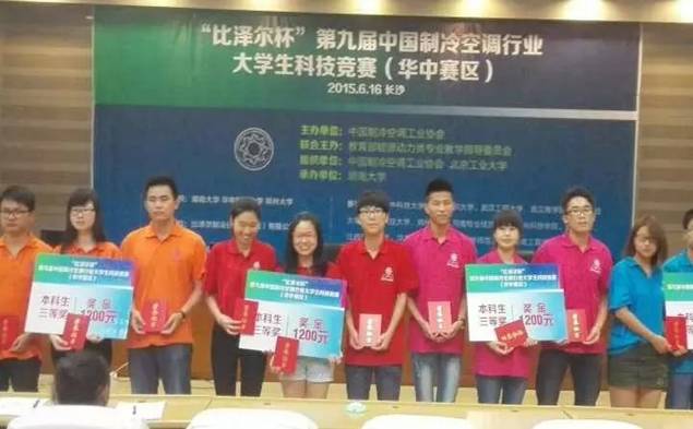 “比泽尔杯”第九届中国制冷空调行业大学生科技竞赛(华中赛区)经过6月15、16两天激烈的角逐,在湖南大学的逸夫楼拉下帷幕。这次比赛由中国制冷空调工业学会主办,教育部能源动力类专业教学指导委员会联合主办,湖南大学承办。经过组织单位初步选拔后,来自19所高校的20个队伍参加了本次比赛。我校开云网页版页面建筑环境与能源应用专业的李文菁老师指导的“Stokes team ”(建环12级严凤、吴祥、郑佩佳)获得了本次比赛的三等奖。