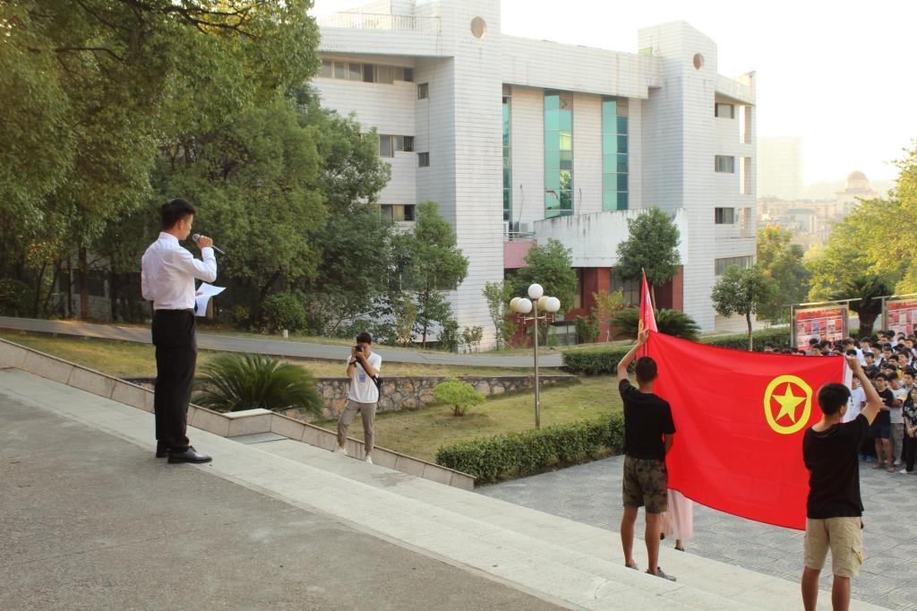 为庆祝中华人民共和国诞生70周年,大力唱响礼赞新时代,奋进新时代的青春旋律。2019年9月24日早上7:00-7:25,湖南工程学院北苑四个学院在学海花园庄严举行了团日活动:我与祖国共奋进---国旗下的演讲。黄静燕、刘熹微、柳芊,以及张超等指导老师,与北苑大二学生一起参加了本次活动。