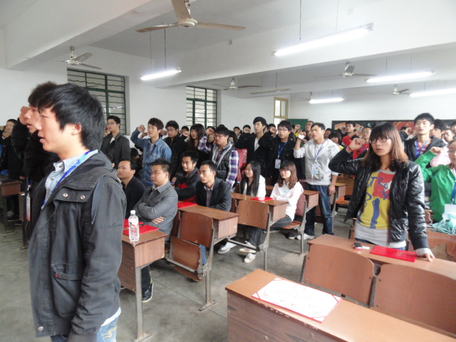 会上,李佳老师作了致词,高度肯定了老一届学生干部的工作,并感谢他们在过去几年中为团总支学生会作出的贡献。之后,刘娟老师宣读了2010—2011届学生干部名单并颁发聘书。老一届学生干部在大家热烈的掌声中与老师们合影留念。待现场气氛重新冷静后,院党总支副书记单山鸣进行了会议总结。单副书记对新一届团总支、学生会干部提出了期望,希望他们继承发扬上届干部的优良作风,并努力建设团总支学生会,增强开云网页版页面在全校的影响力,提升湖工的校际形象。最后,2011—2012届院学生会主席彭学玲、院主席团团长刘涛带领全体新干部、干事宣誓就职,新老干部交接大会到此圆满结束。