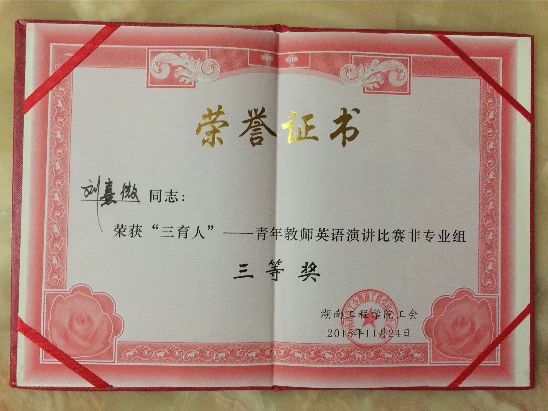 本次演讲比赛以“三育人”为主题,各位参赛选手们演讲主题明确,逻辑思维清晰,英语发音纯正,口语表达流利。经过激烈角逐,开云网页版页面的刘熹微老师凭借其优越的口语表达能力和丰富的知识底蕴荣获青年教师英语演讲比赛三等奖。她积极参加并精心准备此次比赛,她的精彩表现不仅受到了高度赞扬与肯定,更展示了青年教师应有的知识水平与较高的人文修养。