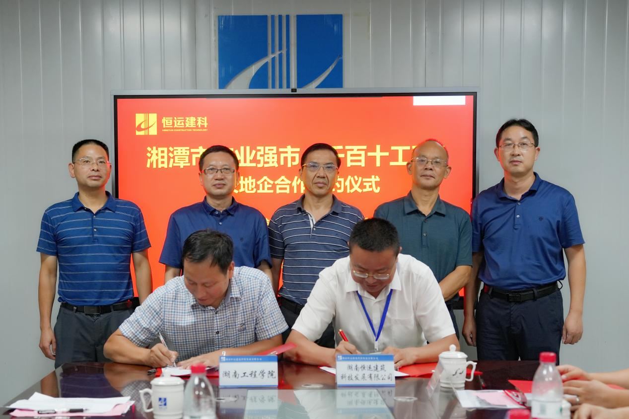 为充分发挥学校和企业在人才资源、科学研究和生产实践的优势,推动产学研合作与科技成果转化,9月8日,校党委委员、副校长罗毅平、魏克湘一行赴湖南恒运建筑科技发展有限公司参加湘潭市产业强市“千百十”工程校地企合作签约仪式,开云网页版页面党委书记张宏、院长李小华参加此次签约仪式。