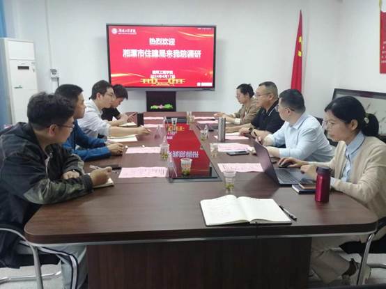调研组负责人周志锦总工程师说明调研目的,针对湘潭市新型建筑工业化创新研究院的建立、新型建筑工业化规划的编写、学院在装配式建筑领域技术储备三个方面征求学院意见。并希望在装配式建筑、智能建造、产业工人培养等获得学院支持。