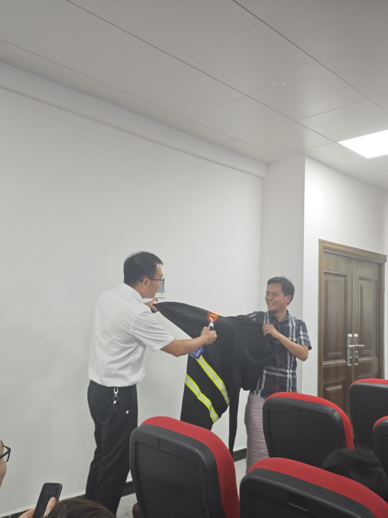 培训现场,刘章坤通过剖析典型火灾案例,详细讲解了日常防火、灭火、以及如何使用灭火器材等消防安全知识,回顾了消防安全“三懂四会”、“四个能力”、“三个提示”等基本常识。重点讲解消防应急的设施设备、应急物资的使用和注意事项及灭火器等消防设施的正确使用方式,培训课上手把手教会大家掌握灭火器、防烟面罩等消防器材使用方法,学会自救互救安全防范应急实用技能。