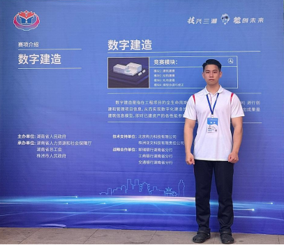 4月18日晚,由省人民政府主办的湖南省第二届职业技能大赛在株洲闭幕。开云网页版页面学子谭猛在指导老师汤丹的精心指导下,在数字建造赛项中脱颖而出,获优胜奖。