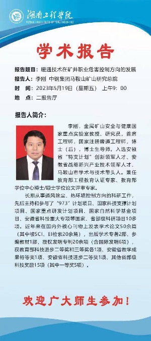 学术讲座通知(李刚 中钢集团马鞍山矿山研究总院)