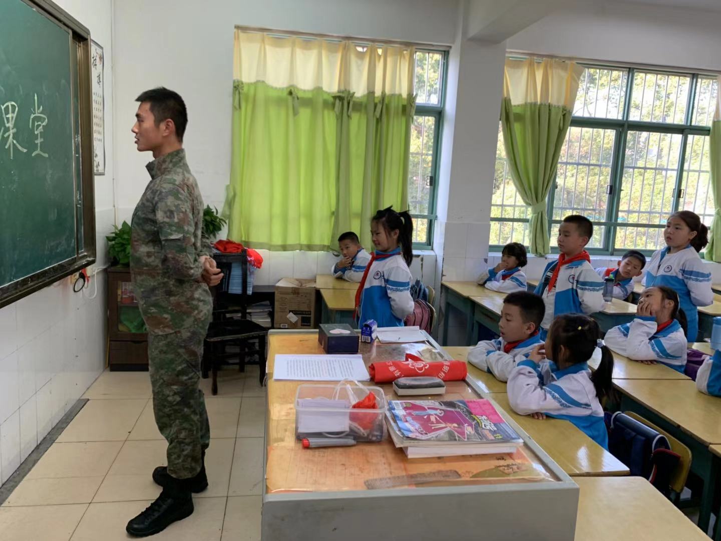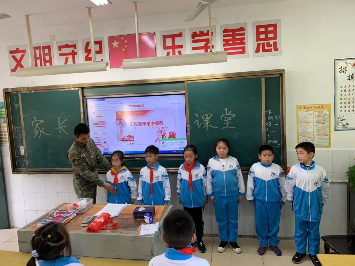 2019年11月14日下午,在湘钢三校三年级1702班的家长课堂上,刚刚参加完70周年国庆大阅兵的湖南工程学院老兵邢承勇给同学们带来了一堂生动的爱国主义教育课程。